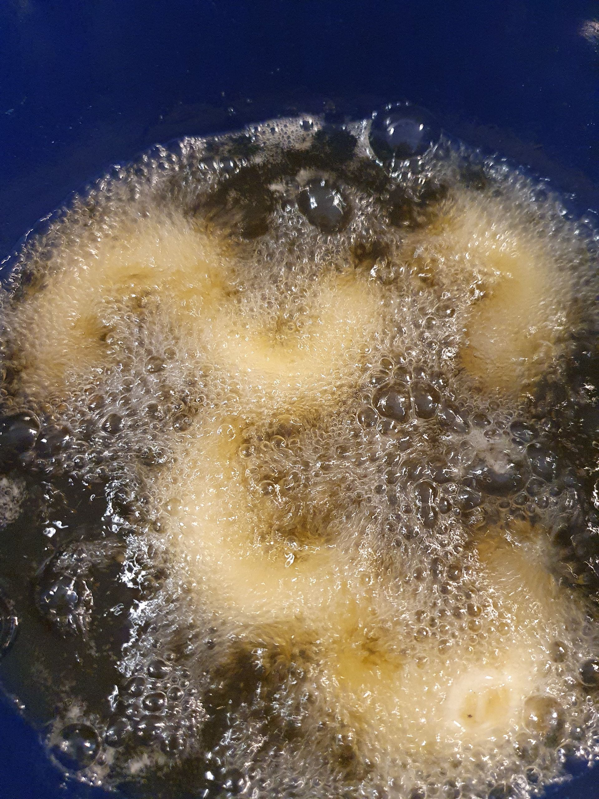 Der Teig sollte fest sein und kein Mehl mehr aufnehmen. Aus der Teigmasse Stänge rollen und zu Hufeisen formen. Anschließend in Schmalz schwimmend ausbacken.